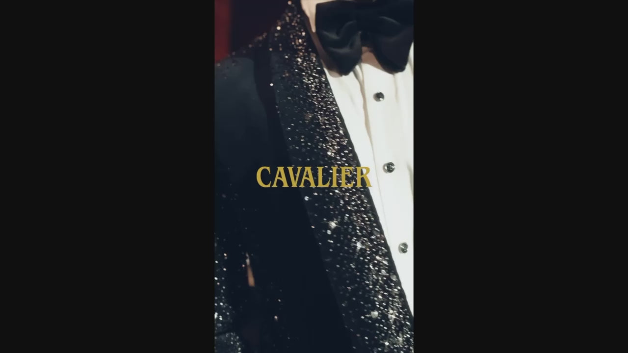 Black and Silver Noir TuxedoUnleash your daring side with this one-of-a-kind tuxedo. Embroidered with sparkling crystals and metallic accents, it’s designed to command attention. A piece that’s as bold as you are, crafted to turn every occasion into your stage. Suit Color: Black with Silver Noir detailing Suit Fabric: Luxurious Silk Velvet Suit Fit:...